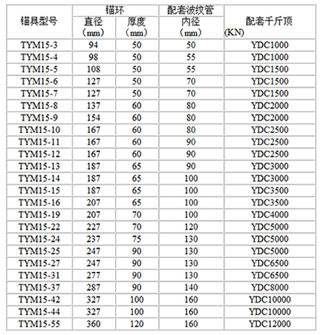 TYM13錨具可錨固Φ12.7的鋼絞線,TYM15錨具可錨固Φ15.24的鋼絞線,